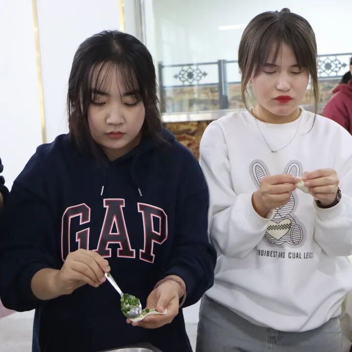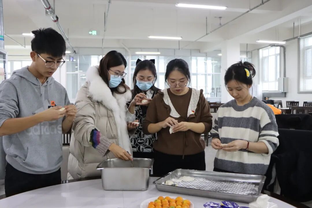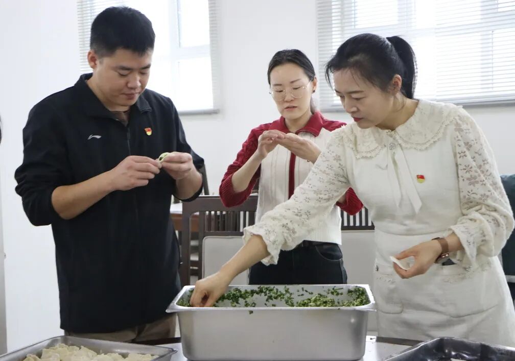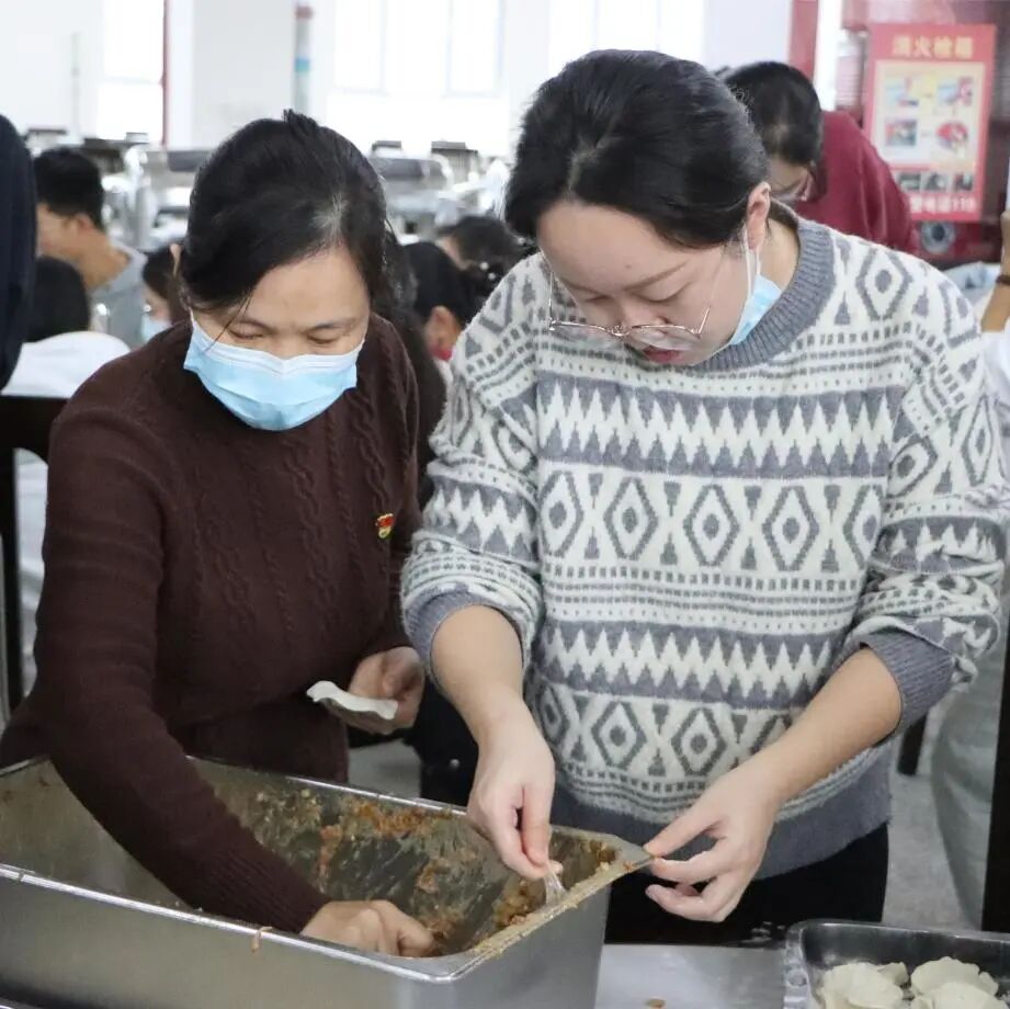 饺子是一种团圆的象征,此次主题党日活动旨在增进师生交流,感受团聚的温暖,让在校师生感受校园里“家”的味道。活动现场,师生一起揉面、擀皮、填馅、捏褶,大家都使出看家本领、各显神通。不一会,一盘盘形态丰富的饺子就成型了。有月牙饺、小鱼饺、元宝饺,甚至还有“拇指包”,师生一堂,一边互相学习交流包饺子的技巧,一边拉家常聊生活,现场欢声笑语,其乐融融。